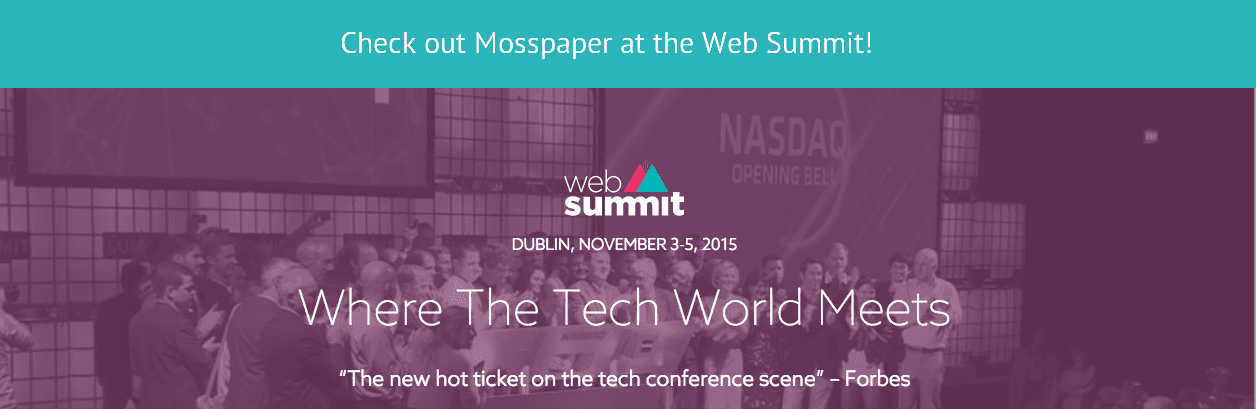 Mosspaper is delighted to announce that it has been selected for participation in the 2015 Web Summit ALPHA Program. Mosspaper is planning to showcase its newest iOS app at Europe’s biggest tech conference, Web Summit 2015 in Dublin, Ireland on November 3rd- 5th, 2015, with over 30,000 visitors from around the world expected to attend.