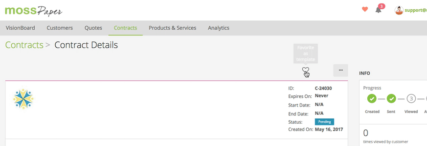 Reduce the creation time of a quote or contract by 50% with favoriting. You can now add any quote or contract to your favorites by clicking the heart icon. Your favorites are saved to the "favorites" folder so you can easily find them again. You can categorize all your templates by creating different collections and saving as many documents as you like to be reused.